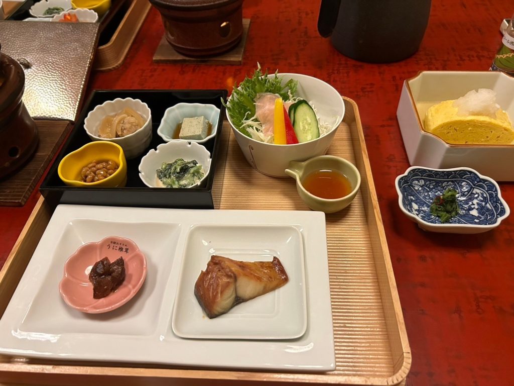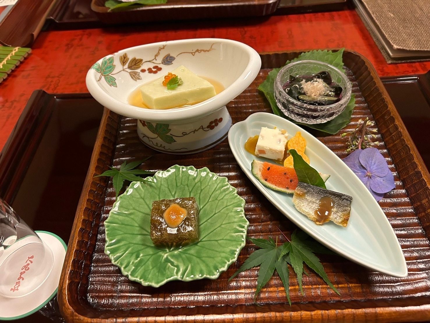 お膳にはあじさいが添えられ、日常では感じられない季節感という、贅沢を感じた😑