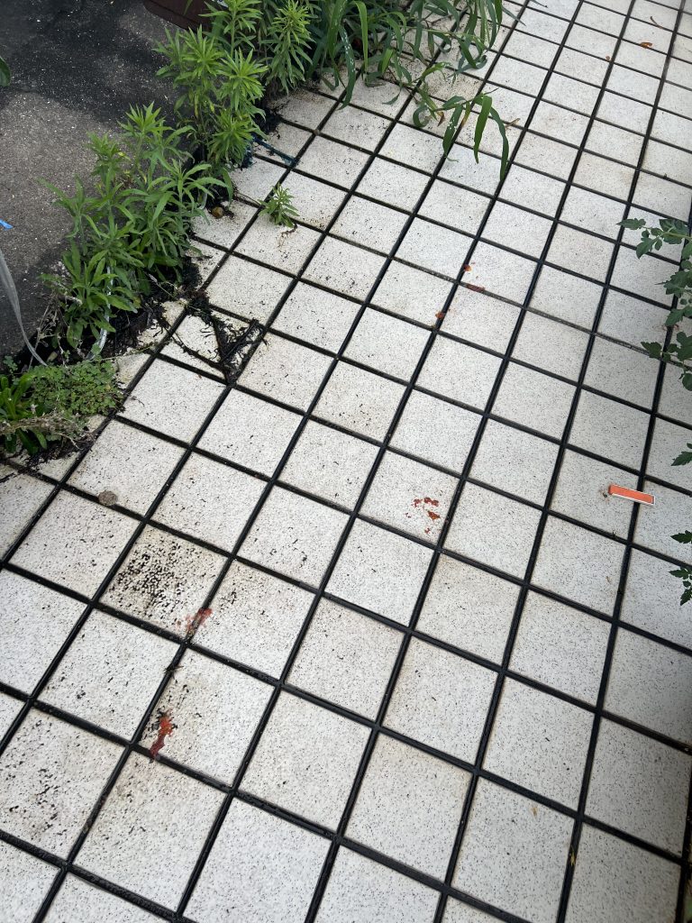 昇降口の周りにミニトマトが散乱していた。
